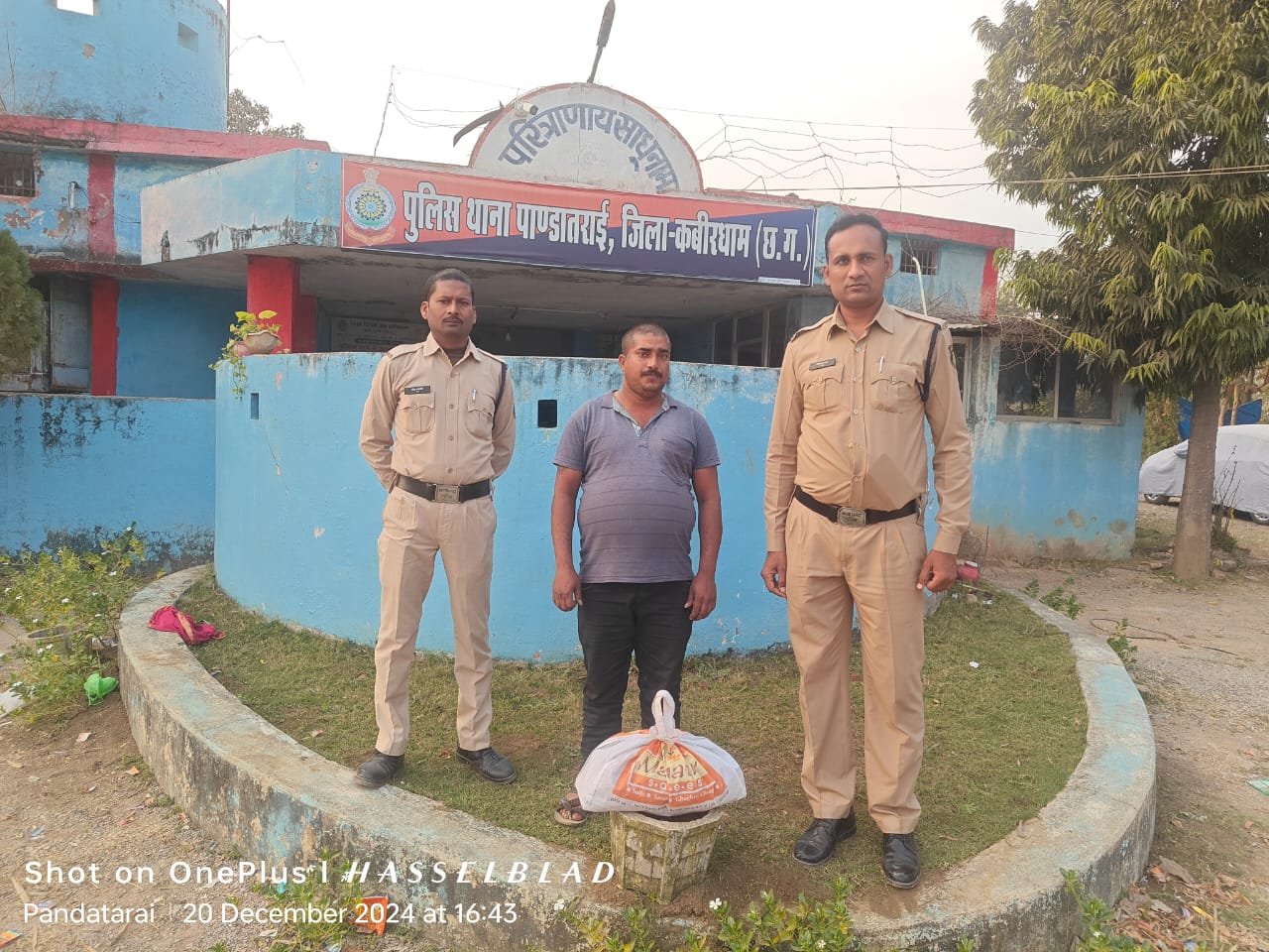 थाना पाण्डातराई पुलिस ने अवैध मादक पदार्थ गांजा की बिक्री करते हुए एक आरोपी को गिरफ्तार किया और उसके पास से 2 किलोग्राम गांजा बरामद किया। बरामद गांजा की अनुमानित कीमत ₹20,000 है। आरोपी के खिलाफ एनडीपीएस एक्ट की धारा 20(ख) के तहत मामला दर्ज कर न्यायालय में प्रस्तुत किया गया, जहां से उसे न्यायिक रिमांड पर जेल भेज दिया गया। पुलिस अधीक्षक कबीरधाम धर्मेन्द्र सिंह (भा.पु.से.) ने सख्त संदेश देते हुए कहा है कि जिले में अवैध मादक पदार्थों के कारोबार और उनकी बिक्री को किसी भी स्थिति में बर्दाश्त नहीं किया जाएगा। उन्होंने स्पष्ट किया कि मादक पदार्थों की बिक्री और वितरण से समाज को गंभीर क्षति पहुंचती है, विशेष रूप से युवाओं का भविष्य इससे प्रभावित होता है। इसे रोकने के लिए कबीरधाम पुलिस पूरी तरह प्रतिबद्ध है और ऐसे अपराधों में लिप्त व्यक्तियों के खिलाफ सख्त कार्रवाई की जाएगी। धर्मेन्द्र सिंह (भा.पु.से.) ने जिले के सभी थाना प्रभारियों को निर्देशित किया है कि वे अपने-अपने क्षेत्रों में लगातार गश्त करें, सूचना तंत्र को मजबूत करें और इस तरह की अवैध गतिविधियों पर सख्त नजर रखें। उन्होंने यह भी अपील की कि समाज के जागरूक नागरिक ऐसे मामलों में पुलिस को सूचित करें ताकि दोषियों को कानून के दायरे में लाया जा सके। इस कार्रवाई में अतिरिक्त पुलिस अधीक्षक पुष्पेंद्र बघेल (रा.पु.से.) व पंकज कुमार पटेल (रा.पु.से.) के निर्देशन एवं एसडीओपी बोडला अखिलेश कुमार कौशिक (रा.पु.से.) के मार्गदर्शन में थाना प्रभारी निरीक्षक जन्मेजय पाण्डेय और उनकी टीम ने उत्कृष्ट कार्य किया। थाना पाण्डातराई पुलिस टीम में निरीक्षक जन्मेजय पाण्डेय के साथ सहायक उप निरीक्षक रघुवंश पाटिल, प्रधान आरक्षक हरिशचंद्र चंद्रवंशी, शिवाकांत शर्मा, मारतंग चंद्रवंशी और पुरुषोत्तम वर्मा शामिल थे, जिनका इस सफलता में विशेष योगदान रहा। कबीरधाम पुलिस अवैध गतिविधियों पर प्रभावी अंकुश लगाने के लिए इस प्रकार की कार्रवाई को निरंतर जारी रखेगी।Post navigationकवर्धा में आज अखिल भारतीय कवि सम्मेलन, सुरेन्द्र दुबे सहित देश के कई प्रख्यात कवि करेंगे कविता पाठ **कबीरधाम पुलिस द्वारा स्कूल व कॉलेज के छात्राओं के लिए चलाया गया जन जागरूकता अभियान