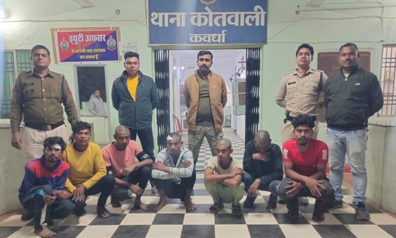 कवर्धा। पुलिस अधीक्षक ** धर्मेंद्र सिंह (IPS)** के निर्देशन में और अतिरिक्त पुलिस अधीक्षक पुष्पेंद्र बघेल** एवं ** पंकज पटेल** के मार्गदर्शन में कवर्धा पुलिस ने मिनीमाता चौक पर उपद्रव कर रहे सात युवकों को गिरफ्तार कर एक बड़ी घटना को टाल दिया। ये युवक नशे की हालत में राहगीरों से झगड़ा कर रहे थे, मारपीट कर रहे थे और जान से मारने की धमकी दे रहे थे। पुलिस ने समय पर कार्रवाई कर सार्वजनिक शांति बहाल की।