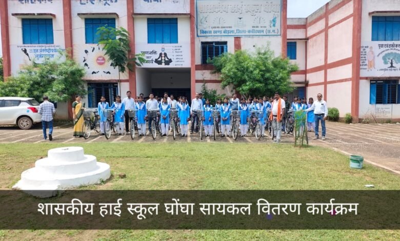 “सायकल पाकर छात्राओं के चेहरे खिले ” -शासकीय हाई स्कूल घोंघा में सरस्वती सायकल योजना अंतर्गत कक्षा नवमी के नव प्रवेशी छात्राओं के लिए सायकल वितरण कार्यक्रम, का आयोजन किया गया , आयोजन का शुभारंभ मां शारदे की पूजा कर प्रारंभ किया गया। इस कार्यक्रम में शाला विकास समिति के अध्यक्ष रामेश्वर मेरावी एवं सदस्य सुरेंद्र बघेल , संतोष सैयाम ,ग्रामवासी और बच्चों के पालक गण उपस्थित रहे अध्यक्ष ने संबोधित किया और कहा कि बेटियों को शाला में सुविधा होगी ,प्राचार्य रामकुमार बघेल ने कहा कि यह छात्राओं के लिए महत्वाकांक्षी योजना है और बच्चों को संबोधित करते हुए कहा कि अब आपको समय में विद्यालय आने में सुविधा होगी इसलिए आप सभी समय पर विद्यालय में पहुंचेंगे साथ विद्यालय से छुट्टी होने के बाद समय पर अपने घर पहुंचेंगे l