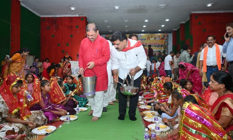 महिला एवं बाल विकास विभाग द्वारा ‘‘बेटी बचाओ-बेटी पढ़ाओ’’ कार्यक्रम अंतर्गत नवरात्रि पर्व के पावन अवसर पर कन्या पूजन का भव्य आयोजन कबीरधाम में किया गया। आयोजन का मुख्य उद्देश्य बेटियों के प्रति सम्मान को बढ़ाने एवं शिक्षा को प्रोत्साहन देना था। कार्यक्रम में उपमुख्यमंत्री विजय शर्मा सम्मिलित होकर कन्याओं का पूजन फूल माला, कुम-कुम चंदन चुनरी श्रृंगार के साथ दीप प्रज्वलित कर कन्या भोज का विधिवत शुभारंभ किया। कार्यक्रम में उपमुख्यमंत्री शर्मा के साथ सांसद संतोष पाण्डेय, पंडरिया विधायक भावना बोहरा भी शामिल हुए। उन्होंने माता स्वरूप कन्याओं के चरण स्पर्श कर आशीर्वाद भी प्राप्त किया। कन्या पूजन कार्यक्रम में सभी अतिथियों ने अलग-अलग क्षेत्रों से बड़ी संख्या में आए कन्याओं की पूजा अर्चना कर उन्हें स्वयं भोजन परोसा। माँ आदिशक्ति स्वरूपा बालिकाओं का कार्यक्रम में उत्साह एवं हर्ष उल्लास से पूरा कार्यक्रम सजा रहा, कार्यक्रम में अतिथियों ने विभाग के आयोजन को खूब सराहा।