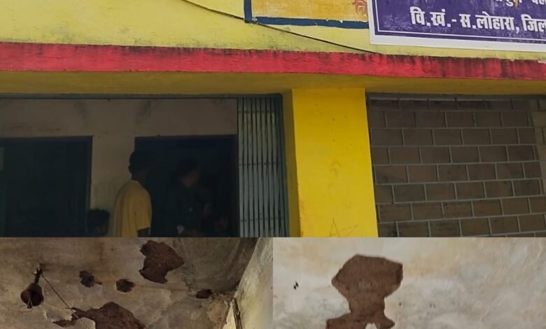 अभी बारिश का दौर जारी है,ऊपर छत में पानी भरने के कारण सीपेज आकर पलस्तर पूरे तरह गिर रहे है,,कही हादसा का शिकार न हो जाए छोटे छोटे स्कूली मासूम बच्चे