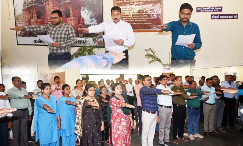 कवर्धा, 31 अक्टूबर 2025। राष्ट्रीय एकता दिवस पर कलेक्टर गोपाल वर्मा ने आज सुबह 10.30 बजे कलेक्टोरेट में अपर कलेक्टर विनय पोयाम, नरेन्द्र पैकरा सहित अधिकारी, कर्मचारियों को शपथ दिलाई। इस दौरान राष्ट्र की एकता, अखंडता और सुरक्षा को बनाए रखने स्वयं को समर्पित करने और देशवासियां के बीच यह संदेश फैलाने का प्रयत्न करने की शपथ ली गई। शपथ में यह भी कहा गया कि यह शपथ देश की एकता की भावना से ले रहे हैं, जिसे सरदार वल्लभभाई पटेल की दूरदर्शिता एवं कार्यों द्वारा संभव बनाया जा सका। साथ ही अपने देश की आंतरिक सुरक्षा सुनिश्चित करने के लिए अपना योगदान करने का भी सत्यनिष्ठा से संकल्प लिया गया। इस अवसर पर अधिकारी-कर्मचारी उपस्थित थे। इस दौरान जिले के सभी शासकीय कार्योलयों में राष्ट्र की एकता, अखंडता और सुरक्षा की शपथ ली गई।
