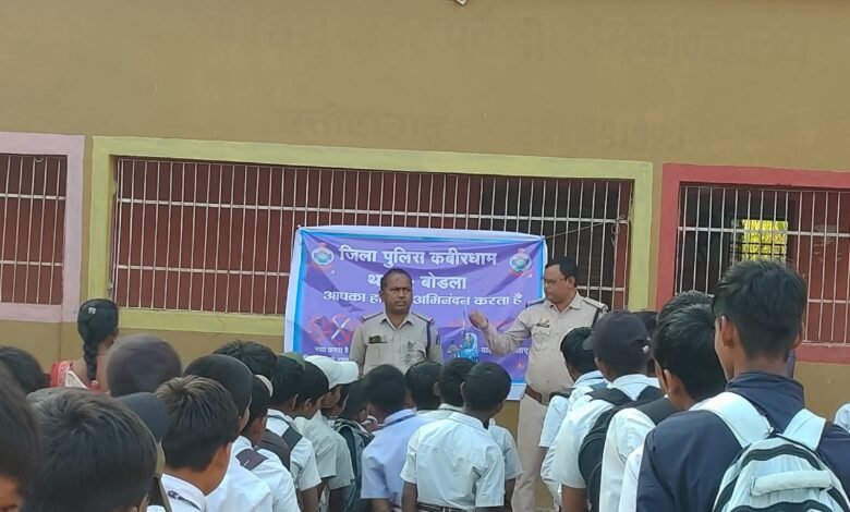 पुलिस अधीक्षक महोदय  धर्मेन्द्र सिंह (भा.पु.से.) के मागदर्शन में एवं अतिरिक्त पुलिस अधीक्षक  पुष्पेन्द्र कुमार सिंह एवं अतिरिक्त पुलिस अधीक्षक पंकज पटेल एवं अनुविभागीय अधिकारी  अखिलेश कौशिक एवं थाना प्रभारी निरीक्षक श्री रूपक शर्मा के निर्देशानुसार थाना बोड़ला द्वारा आज दिनांक 18.11.2025 को सरस्वती शिशु मंदिर नगर पंचायत बोड़ला थाना बोड़ला जिला कबीरधाम में बाल सुरक्षा सप्ताह के तहत कार्यक्रम किया गया एवं कार्यक्रम में उपस्थित स्कुल प्राचार्य, शिक्षक/शिक्षिकाए एवं छात्र छात्राओं की उपस्थिति में सुरक्षा एवं नये कानून के बारे में विस्तृत जानकारी दिया गया, जिसमें मुख्य रूप से बाल विवाह, सायबर अपराध, ऑनलाईन ठगी, दहेज प्रथा, पास्को एक्ट, घरेलू हिंसा, गुड टच बैड टच, अभिव्यक्ति एप से संबंधित जानकारी दिया जाकर यातायात नियमों के पालन जैसे हेलमेट लगाना, तीन सवारी नही चलना, शराब पीकर वाहन न चलाना एवं नाबालिक बालक बालिकाओ को मोटर सायकल नही चलाने की संबंध में विस्तार पूर्वक जानकारी दिया जाकर जागरूकता अभियान चलाया गया।