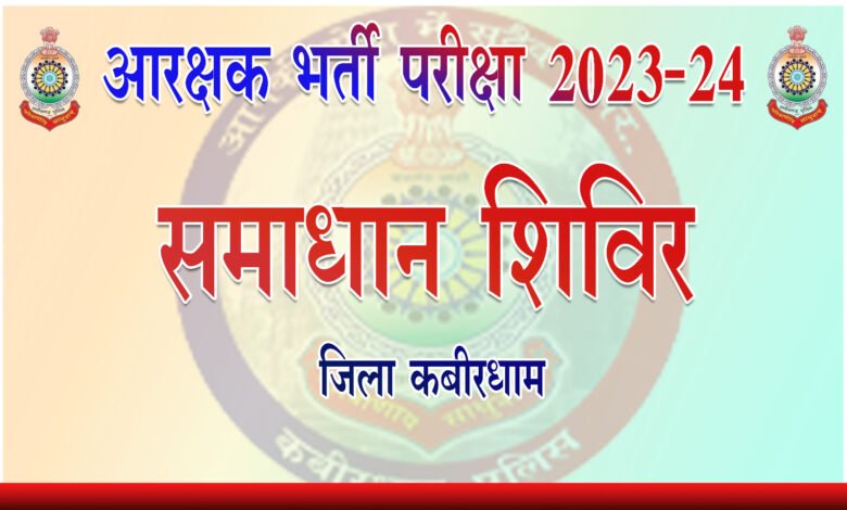 कवर्धा-: कांस्टेबल भर्ती परीक्षा 2023–24 के घोषित परिणामों से संबंधित अभ्यर्थियों की शंकाओं, आपत्तियों एवं शिकायतों के निराकरण हेतु पुलिस मुख्यालय रायपुर के निर्देशानुसार जिला कबीरधाम में विशेष समाधान शिविर का आयोजन किया जा रहा है।
