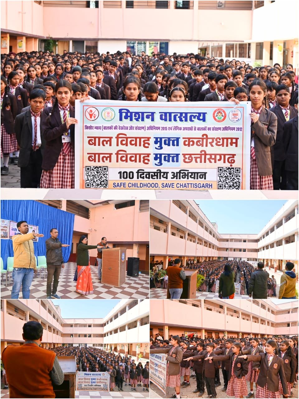कवर्धा -: छत्तीसगढ़ शासन द्वारा संचालित 100 दिवसीय बाल विवाह रोकथाम अभियान के अंतर्गत आज शहर के प्रमुख सी.बी.एस.ई. विद्यालय श्री रामकृष्ण पब्लिक स्कूल में महिला एवं बाल विकास विभाग द्वारा जागरूकता कार्यक्रम का आयोजन किया गया। कार्यक्रम का उद्देश्य विद्यार्थियों को बाल विवाह के दुष्परिणामों से अवगत कराना तथा ‘बेटी पढ़ाओ, बेटी बचाओ’ अभियान के महत्व को रेखांकित करना रहा। विद्यालय के प्रार्थना स्थल पर सभी विद्यार्थियों को कतारबद्ध कर कार्यक्रम आयोजित किया गया, जिसमें विद्यालय की प्राचार्या एवं विद्यालय के संचालक की गरिमामयी उपस्थिति रही। कार्यक्रम की शुरुआत महिला एवं बाल विकास विभाग में कार्यरत डीआरडब्ल्यू श्री विनय जंघेल के उद्बोधन से हुई। उन्होंने विद्यार्थियों को बाल विवाह से होने वाले सामाजिक, शैक्षणिक एवं स्वास्थ्य संबंधी दुष्प्रभावों की जानकारी दी तथा बाल विवाह से जुड़े अपराधों पर लागू कानूनी प्रावधानों, धाराओं एवं न्यायिक कार्यवाही के बारे में विस्तार से बताया। अपने संबोधन के अंत में श्री जंघेल ने उपस्थित समस्त विद्यार्थियों को बाल विवाह रोकथाम हेतु शपथ भी दिलाई। कार्यक्रम में उनके साथ अविनाश ठाकुर एवं मिशन समन्वयक श्री घनश्याम साहू भी उपस्थित रहे। इस अवसर पर विद्यालय परिवार ने महिला एवं बाल विकास विभाग के अधिकारियों का आभार व्यक्त करते हुए कहा कि ऐसे जागरूकता कार्यक्रम विद्यार्थियों में सामाजिक जिम्मेदारी और सकारात्मक सोच विकसित करने में महत्वपूर्ण भूमिका निभाते हैं।Post navigationपंडरिया के गांवों को मिली विकास की नई रफ्तार, विधायक भावना बोहरा ने 19.49 करोड़ से अधिक के सड़क निर्माण कार्यों का किया भूमिपूजन थाना पिपरिया पुलिस की बड़ी कार्रवाई