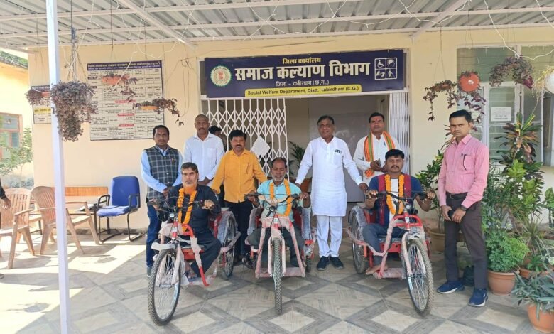जिला समाज कल्याण कार्यालय कबीरधाम में दिव्यांगजनों को मोटराइज्ड ट्रायसायकल का वितरण