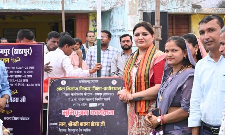 कवर्धा/ पंडरिया  -:. विधानसभा क्षेत्र के ग्राम रामपुर (ठाठापुर) में विकास कार्यों को नई दिशा देते हुए विधायक भावना बोहरा ने ₹97.43 लाख की लागत से प्रस्तावित विभिन्न अधोसंरचना परियोजनाओं का भूमिपूजन किया। कार्यक्रम के साथ-साथ महिला स्व-सहायता समूहों के लिए आजीविका मिशन अंतर्गत प्रशिक्षण भी आयोजित किया गया।