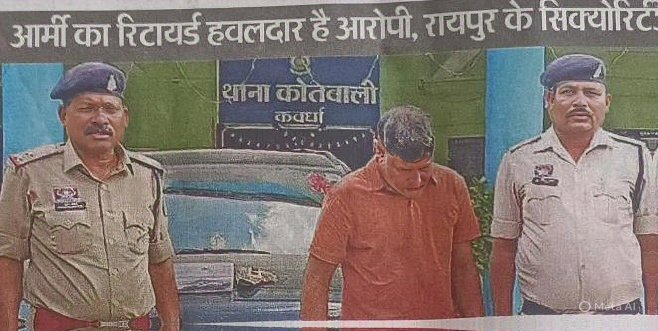 कवर्धा: कवर्धा में खुद को भारतीय खाद्य निगम (FCI) का अफसर बताकर एक किराना व्यापारी से 50 हजार रुपये वसूलने के आरोप में पुलिस ने रिटायर्ड आर्मी हवलदार सचिन चड्ढा (47) को गिरफ्तार किया है। आरोपी वर्तमान में रायपुर की एक सिक्योरिटी कंपनी में सुपरवाइजर के पद पर कार्यरत है।घटना का विवरण: 2 अप्रैल की रात आरोपी सचिन चड्ढा कार से रायपुर रोड स्थित मारुति नेक्सा शोरूम के सामने पीतांबर गुप्ता (67) की किराना दुकान पर पहुंचा। उसने खुद को FCI अफसर बताते हुए व्यापारी पर चोरी का चावल खरीदने का आरोप लगाया और जेल भेजने की धमकी दी। आरोपी ने कमर में खोंसी लाइसेंसी पिस्टल दिखाकर डराया। धमकी से घबराए व्यापारी ने 500-500 के 100 नोट, कुल 50 हजार रुपये आरोपी को दे दिए। रकम लेने के बाद आरोपी फरार हो गया।पुलिस कार्रवाई: पीड़ित की शिकायत पर पुलिस ने BNS की धारा 308(6) के तहत FIR दर्ज की। जांच के दौरान आरोपी को रायपुर से गिरफ्तार कर कवर्धा लाया गया। पूछताछ में आरोपी ने अपराध स्वीकार किया। एएसपी पुष्पेंद्र बघेल के अनुसार, आरोपी के कब्जे से ग्रैंड विटारा कार, 0.32 बोर की लाइसेंसी पिस्टल, 2 मैगजीन और 11 जिंदा कारतूस जब्त किए गए हैं।आरोपी की पृष्ठभूमि: आरोपी सचिन चड्ढा मूलतः हरियाणा का रहने वाला है। वह 2002 में सेना में आरक्षक के पद पर भर्ती हुआ था और 2024 में हवलदार के पद से रिटायर हुआ। जम्मू-कश्मीर में तैनाती के दौरान वह आतंकी मुठभेड़ों में शामिल रहा और सम्मानित भी हुआ। रिटायरमेंट के बाद वह रायपुर की सिक्योरिटी कंपनी में सुपरवाइजर बन गया।मामले की जड़: कंपनी के 3 गार्ड कवर्धा के मगरदा गांव स्थित वेयरहाउस में तैनात थे, जहां से चावल चोरी की शिकायत मिल रही थी। सचिन इसी की जांच के लिए कवर्धा आया था। जांच के दौरान उसने दुल्लापुर के सरपंच व कोटवार से संपर्क किया और कथित तौर पर चोरी का चावल खरीदने वाले व्यापारियों की जानकारी जुटाई, जिसके बाद उसकी नीयत बिगड़ गई।कोर्ट में पेशी के बाद आरोपी को न्यायिक रिमांड पर जेल भेज दिया गया है।Post navigationबस संचालन सुधारने के लिए पुलिस सख्त, अनियमित स्टॉपेज और अव्यवस्थित पार्किंग पर लगेगा अंकुश कलेक्टर गोपाल वर्मा के निर्देश पर ग्रामों में स्वास्थ्य शिविर आयोजित, 124 मरीजों की पोर्टेबल एक्स-रे से जांच*