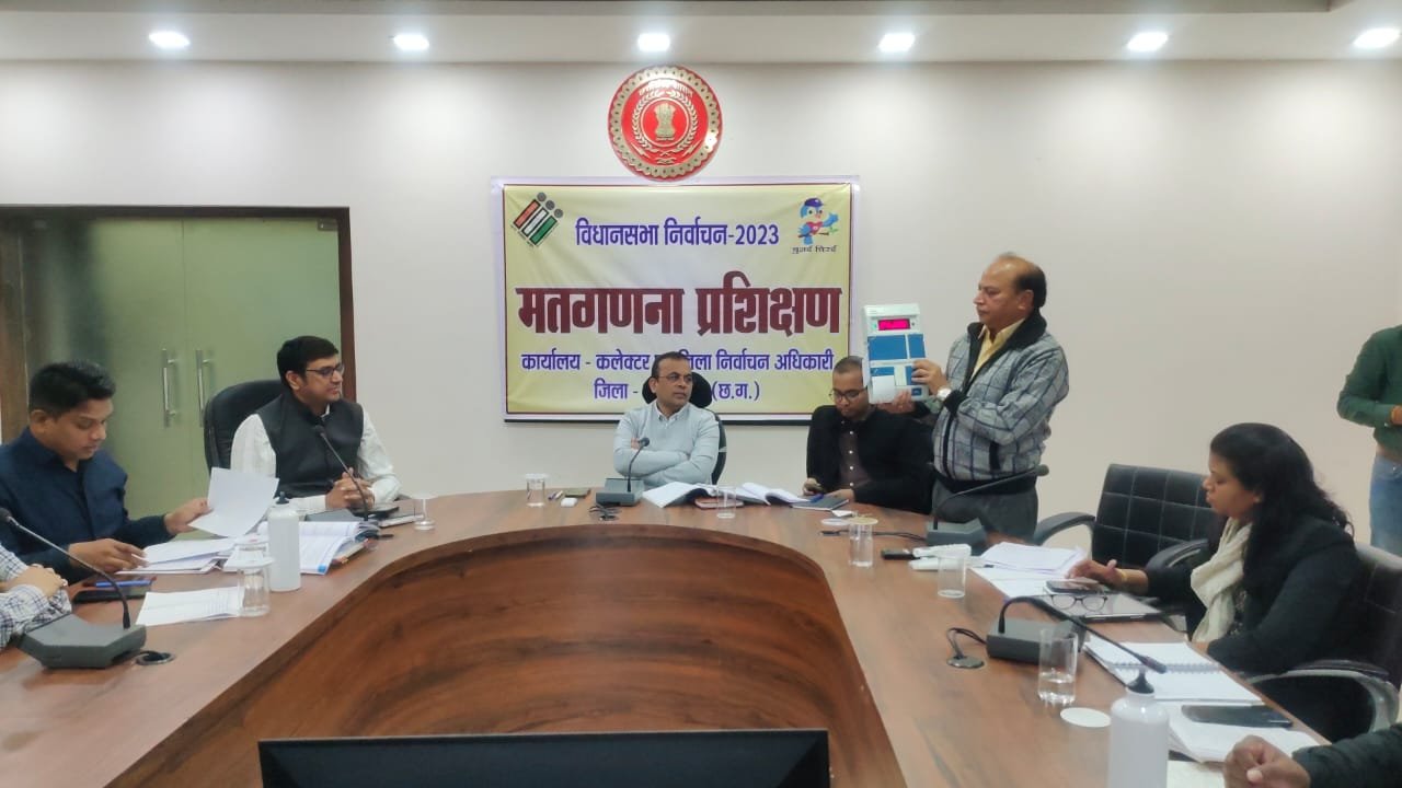 विधानसभा आम निर्वाचन 2023 के तहत 03 दिसंबर 2023 को सुबह 08 बजे से जिले के कृषि उपज मंडी समिति, बिलासपुर रोड़ कवर्धा में विधानसभा क्षेत्र 71-पंडरिया और विधानसभा क्षेत्र 72-कवर्धा के लिए डाले गए मतो की गणना (ईवीएम) कार्य किया जाएगा। कलेक्टर एवं जिला निर्वाचन अधिकारी जनमेजय महोबे की उपस्थिति में मतगणना कार्य के सफल संपादन के लिए आज जिला कार्यालय के सभाकक्ष में गणना पर्यवेक्षक और गणना सहायकों को मास्टर ट्रेनर्स द्वारा दो पालियों में मतगणना कार्य का प्रशिक्षण दिया। इसके साथ ही डाक मतपत्र एवं ईटीपीबी की गणना संबंधी प्रशिक्षण मतगणना अधिकारी को दिया गया। कलेक्टर एवं जिला निर्वाचन अधिकारी महोबे ने बताया कि प्रेक्षक की उपस्थिति में 02 दिसंबर 2023 शाम 03 बजे कृषि उपज मंडी समिति, बिलासपुर रोड़ कवर्धा मतगणना स्थल में प्रायोगिक प्रशिक्षण किया जाएगा, जिसमें सभी गणना पर्यवेक्षक और गणना सहायकों की उपस्थिति अनिवार्य है। उन्होंने गणना पर्यवेक्षक, गणना सहायकों सहित निर्वाचन से जुड़े अधिकारी-कर्मचारियों को निर्देशित करते हुए कहा कि मतगणना तिथि को प्रातः 06 बजे मतगणना स्थल पर अपनी उपस्थिति सुनिश्चित करेंगे। मतगणना स्थल पर मोबाईल एवं अन्य इलेक्ट्रानिक सामग्री लेकर जाना पूर्णतः वर्जित है। कलेक्टर एवं जिला निर्वाचन अधिकारी महोबे ने भारत निर्वाचन आयोग के दिशा-निर्देशों एवं अनुशासन के साथ मतगणना कार्य को सफलतापूर्वक संपादित करने के लिए अधिकारियों को निर्देशित किया। इसके साथ ही मतगणना की बारीकियों के संबंध में प्रस्तुतीकरण के जरिए विस्तार से जानकारी दी। मास्टर ट्रेनर द्वारा प्रशिक्षण में वीडियोग्राफी रेण्डमाईजेशन प्रक्रिया, स्ट्रांग रूम के खोले जाने, स्ट्रांग रूम से मतगणना स्थल तक ईवीएम का परिवहन, मतगणना हॉल की व्यवस्थाओं, मतगणना प्रक्रिया, अभ्यर्थी या अभ्यर्थी के अभिकर्ताओं उपस्थिति, परिणाम घोषणा प्रक्रिया आदि के बारे में बताया गया। मास्टर ट्रेनर्स द्वारा मतगणना के संबंध में भारत निर्वाचन आयोग के निर्देशों की जानकारी देते हुए उनका शत-प्रतिशत् पालन सुनिश्चित करने को कहा गया। प्रशिक्षकों के द्वारा संपूर्ण मतगणना प्रक्रिया की जानकारी दी गई। इसके साथ ही आवश्यकता पड़ने पर पुर्नगणना के संबंध में भी विस्तारपूर्वक जानकारी दी गई। प्रशिक्षण में मतगणना स्थल पर प्रवेश के लिए मतगणना कार्य में लगे अधिकारी-कर्मचारियों के अलावा उम्मीदवारों एवं उनके निर्वाचन अभिकर्ताओं तथा मीडियाकर्मियों को पहचान पत्र जारी किए जाने के संबंध में प्राप्त दिशा-निर्देशों की भी जानकारी दी गई। कलेक्टर एवं जिला निर्वाचन अधिकारी ने कहा कि सिलिंग कार्य महत्वपूर्ण है तथा रिटर्निंग ऑफिसर इस पर विशेष ध्यान देते हु