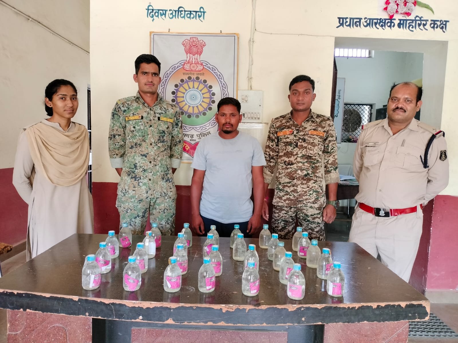 पुलिस अधीक्षक कवर्धा श्री डां0 अभिषेक पल्लव (भापुसे) के द्वारा समस्त थाना/चौकी प्रभारियो को अवैध शराब पर प्रभावी रूप से कार्यवाही करने एवं अंकुश लगाने हेतु निर्देशित किया गया है। जिसके परिपालन में अति.पुलिस अधीक्षक विकास कुमार (भापुसे), अति.पुलिस अधी. पुष्पेन्द्र सिंह बघेल (रापुसे) एंव पुलिस अनुविभागीय अधिकारी पण्डरिया पंकज कुमार पटेल (रापुसे) के मार्गदर्शन में थाना पंडरिया द्वारा क्षेत्र में लगातार सूचना एकत्र की जा रही थी,इसी तारतम्य में थाना पंडरिया पुलिस को दिनांक 17-04-2024 के जरिये मुखबीर से सूचना मिली कि नया बस स्टैंड शुलभ शौचालय के पास पंडरिया में एक व्यक्ति अवैध रूप से देशी प्लेन मदिरा शराब अपने कब्जे में रख कर बिक्री कर रहा हैं। सूचना को वरिष्ठ अधिकारियो को अवगत कराया गया जिस पर थाना प्रभारी पण्डरिया को त्वरित कार्यवाही करने निर्देशित किया गया, कि मुखबीर सूचना आधार पर मुखबीर के बताये स्थान पर जाकर रेड कार्यवाही कर *आरोपी करन बघेल पिता सुरेश बघेल उम्र 29 वर्ष बैरागपारा वार्ड नं.09 पंडरिया थाना पंडरिया जिला कबीरधाम छ.ग.* को पकडा गया, आरोपी के कब्जे से *30 पौवा देशी प्लेन शराब (कुल मात्रा 05.400 लीटर शराब) कीमती 2700/-रूपये*. बरामद हुआ, आरोपी का कृत्य 34(2)आबकारी एक्ट का पाये जाने से आरोपी के विरूद्ध विधिवत कार्यवाही थाना पंडरिया से की जा रही है।उक्त कार्यवाही में थाना प्रभारी निरीक्षक संतोष मिश्रा, सउनि. मोहन लाल खुटे आरक्षक- बेचैन यादव का सराहनी योगदान रहा।Post navigation*500 वर्ष बाद श्री राम अपने मंदिर में पधारे ,राम नवमी पर हिन्दू नववर्ष समिति ने किया महाआरती का आयोजन* लोकसभा निर्वाचन 2024 : पेट्रोल एवं डीजल का पर्याप्त स्टॉक रखने के निर्देश