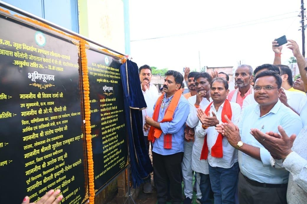 [ad_1]कवर्धा। प्रदेश के उपमुख्यमंत्री विजय शर्मा कबीरधाम जिले के विकास की गति को आगे बढ़ाते हुए 1 करोड़ 85 लाख रूपए के विभिन्न निर्माण कार्यो का भूमिपूजन और लोकार्पण किया। उपमुख्यमंत्री श्री शर्मा ने हाउसिंग बोर्ड कालोनी में सामुदायिक भवन लागत 13 लाख का विधिवत पूजा-अर्चना कर लोकार्पण किया।उन्होंने दीनदयाल आवास योजना अंतर्गत जोराताल मे सीसी रोड निर्माण लागत 73.01 लाख और दीनदयाल आवास योजना भोरमदेव चौक अंतर्गत दुकान कार्यालय एवं फ्लैट लागत 99.01 लाख का भूमि पूजन किया। इन कार्यो के भूमिपूजन और लोकार्पण से विकास और आधारभूत ढांचे को मजबूत करने में महत्वपूर्ण भूमिका निभाएंगी। इन विकास कार्यों के माध्यम से न केवल क्षेत्र का आधारभूत ढांचा मजबूत होगा, बल्कि स्थानीय निवासियों को बेहतर सुविधाएं और रोजगार के अवसर भी मिलेंगे। उपमुख्यमंत्री श्री शर्मा ने कहा कि मुख्यमंत्री विष्णुदेव साय की सरकार लगातार क्षेत्रवासियों की जरूरतों को समझते हुए विकास कार्यों में तेजी ला रही है।उपमुख्यमंत्री विजय शर्मा ने कहा कि नवनिर्मित सामुदायिक भवन से स्थानीय निवासियों को एक स्थान मिलेगा जहां वे सामाजिक और सांस्कृतिक गतिविधियों का आयोजन कर सकते हैं। यह समुदाय की एकता को बढ़ाएगा। उन्होंने बताया कि आज सीसी रोड़ का भी भूमिपूजन किया गया है।उन्होंने कहा कि सड़कों का बेहतर निर्माण यातायात में सुधार लाएगा, जिससे कालोनी के लोगों का आवागमन सुगम होगा। इससे समय की बचत होगी और दुर्घटनाओं का खतरा भी कम होगा। दुकान कार्यालय और फ्लैट के निर्माण से स्थानीय व्यापार को बढ़ावा मिलेगा और लोगों को रोजगार के अवसर मिलेंगे। साथ ही, आवासीय सुविधाओं में भी वृद्धि होगी। इस अवसर पर पूर्व जिला पंचायत अध्यक्ष संतोष पटेल, नगर पालिका अध्यक्ष मनहरण कौशिक, चंद्रप्रकाश चंद्रवंशी, मनीराम साहू, पार्षद उमंग पाण्डेय, खिलेश्वर साहू, पन्न चंद्रवंशी सहित जनप्रतिनिधि, क्षेत्रवासी उपस्थित थे।उल्लेखनीय है कि उपमुख्यमंत्री विजय शर्मा क्षेत्रवासियों की मांग के अनुसार कबीरधाम जिले के समुचित विकास के लिए निरंतर भूमिपूजन और लोकार्पण कर रहे हैं। उनके प्रयासों से विभिन्न निर्माण कार्य, परियोजनाएं शुरू हो रही हैं, जो स्थानीय इंफ्रास्ट्रक्चर को मजबूत करेंगी और नागरिकों की आवश्यकताओं को पूरा करेंगी। इस तरह के विकास कार्यों से क्षेत्र की सामाजिक-आर्थिक स्थिति में सुधार आएगा और लोगों को बेहतर सुविधाएं मिलेंगी।Follow Us [ad_2] Source link Post navigation*युवा मोर्चा के भाजपा सदस्यता रथ को जिले में मिली व्यापक सफलता: मनीराम साहू* केंद्र सरकार ने गरीबों को मुफ़्त अनाज की योजना चार साल बढ़ाई